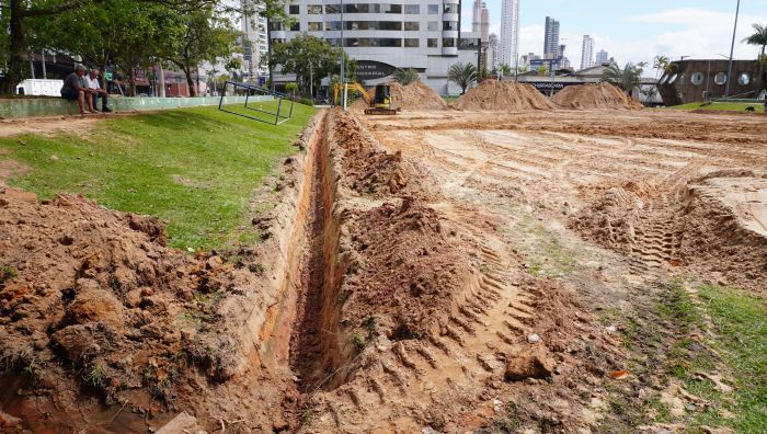 Dunas e valas no campo de areia da praça Genésio de Miranda Lins, na Beira Rio, em Itajaí? Tem explicação. O local está recebendo uma garibada geral em preparação para sediar os jogos da Conmebol Liga Evolución 2025 de beach soccer, evento que contará com seleções internacionais, além da seleção brasileira, heptacampeã mundial da modalidade, em outubro.