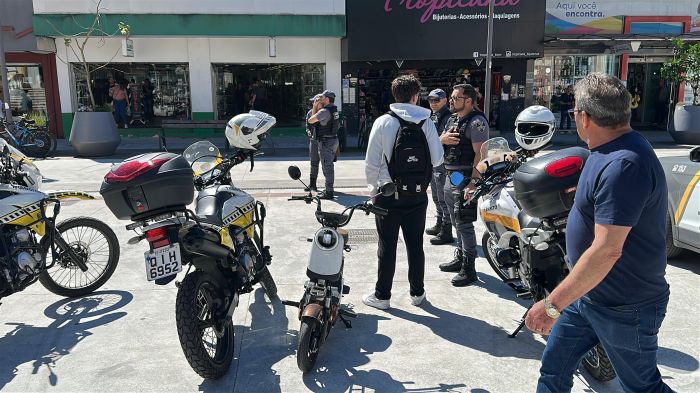 Já na praça Almirante Tamandaré, o foco foi na circulação de ciclomotores e veículos autopropelidos, como scooters e patinetes elétricos. Segundo a secretaria de Segurança, foram abordados 16 condutores para orientação e constatado mais de 20 equipamentos transitando com uso de capacete e conduzidos por pessoas com idade visivelmente igual ou superior a 16 anos.