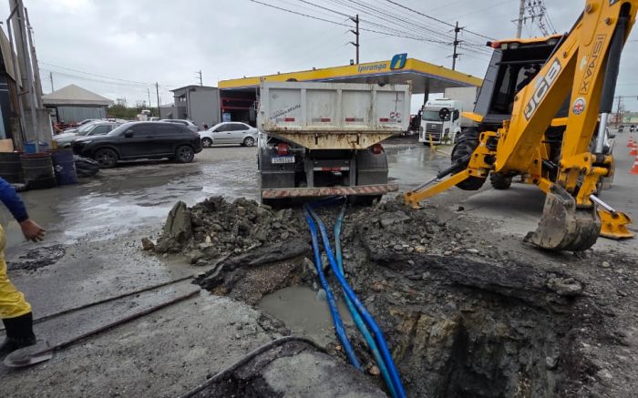 O vazamento numa das principais adutoras que cruzam Itajaí, no início da tarde de quinta, fez o Semasa antecipar as obras de infraestrutura na rede de água que estavam programadas para domingo. O tratamento de água está suspenso desde as 18h de quinta, podendo afetar também o abastecimento de Navegantes.