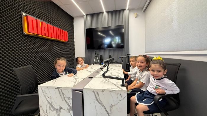 Os alunos do G5 do colégio Alto São Bento, de Itapema, viajaram até Itajaí para conhecer a sede do DIARINHO na tarde de segunda-feira. A turminha, com alunos de cinco anos, está desenvolvendo o jornal “Notícias do Fala, G5!” na escola e veio aprender como funciona a rotina da redação.