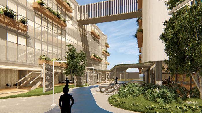 Um dos destaques é uma passarela que vai conectar os dois prédios. Os blocos, em frente à reitoria, ainda terão fachadas projetadas como “convite” pra comunidade se inserir na atmosfera de pluralidade e educação da universidade.