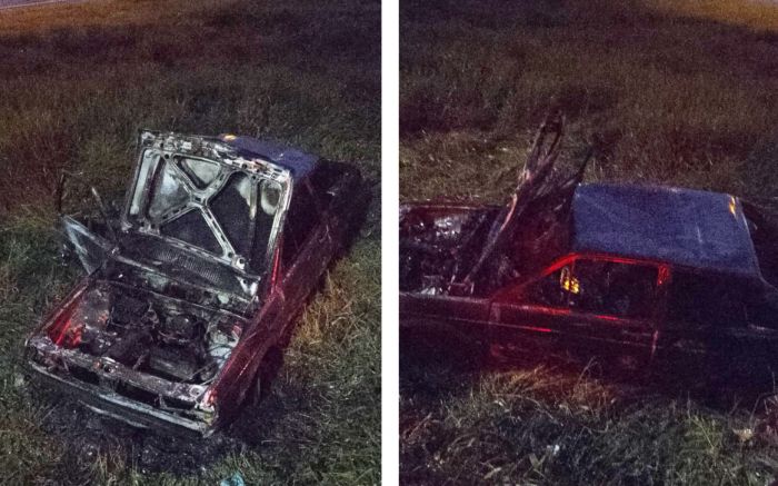Os próprios donos empurraram o carro para um matagal na lateral, para evitar que as chamas se espalhassem até a casa. O carro acabou caindo em um barranco e parou no terreno. Os bombeiros controlaram o incêndio. Não houve feridos.