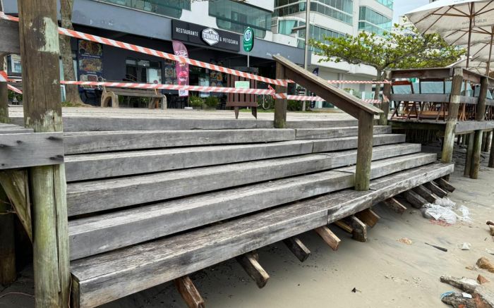 A força do mar provocou estragos no calçadão e nos deques da orla de Itapema entre a noite de segunda e a madrugada desta terça. O avanço das ondas atingiu principalmente a Meia Praia, arrastando areia, quebrando estruturas de madeira e deixando trechos do calçadão danificados. A prefeitura montou uma força-tarefa para conter os impactos da ressaca e garantir a segurança dos frequentadores.