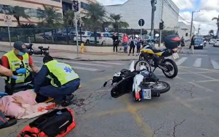 A condutora da moto sofreu ferimentos na barriga, causados pelo impacto da queda e do choque com a própria motocicleta. O Corpo de Bombeiros Militar de Itajaí prestou os primeiros socorros e a vítima foi encaminhada pelo Samu ao Centro Integrado de Saúde (CIS).