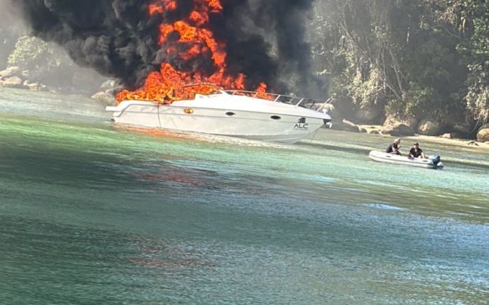 Uma lancha pegou fogo no Caixa d’Aço, em Porto Belo, por volta das 16h desta quarta-feira. Imagens feitas por populares mostram a embarcação em chamas sobre a água. A fumaça preta podia ser vista de vários pontos da cidade.