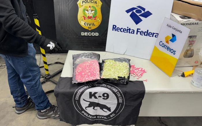 A Receita Federal apreendeu, na manhã de sexta-feira, dois mil comprimidos de ecstasy numa encomenda nos Correios de São José, na grande Florianópolis. A droga foi enviada do Rio de Janeiro pra Santa Catarina.
