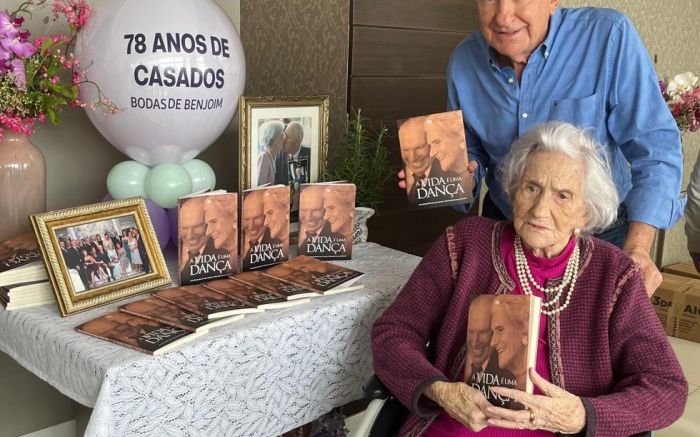 O livro “A vida é uma dança” conta a biografia de um casal cuja história completou 100 anos no último mês de agosto. José Sandri e Miranda Zermiani Sandri nasceram no mesmo dia, 7 de agosto de 1925. Trabalhadores rurais desde muito jovens, os dois se conheceram na década de 1940, em uma domingueira feita para animar os corações, e, em 25 de outubro de 1947, oficializaram a união. De lá para cá, são 78 anos de casados e uma trajetória que deixou muitos frutos para Itajaí. No último domingo, a família se reuniu para um almoço em que foi celebrado o aniversário de casamento e o lançamento do livro.
