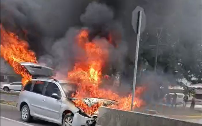 Testemunhas relataram que o fogo começou na parte da frente do carro, no motor. Em vídeos registrados por populares, o veículo aparece parado sobre o canteiro central, no trecho onde termina a mureta de proteção que divide as pistas, e é rapidamente consumido pelas chamas.