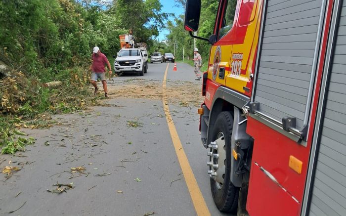Queda de árvore bloqueia rua em Penha