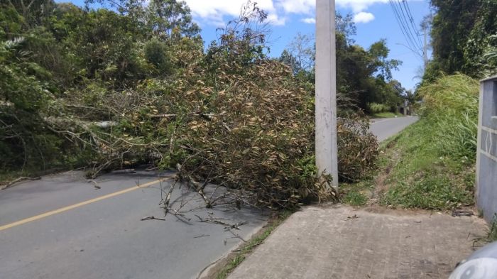 O vendaval de sábado causou diversos prejuízos no Paraná e em Santa Catarina. Em Penha, os bombeiros foram acionados para remover uma árvore que caiu e bloqueou completamente a rua Felipe João Anacleto até as 12h30.