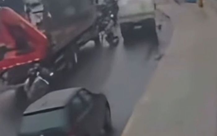 O motociclista Jamisson de Jesus Santos, de 29 anos, morreu atropelado por um caminhão na manhã de terça-feira, na avenida Santa Catarina, no centro de Camboriú. Um vídeo mostra o momento em que ele segue pelo corredor entre dois caminhões, escorrega e cai com a cabeça embaixo do veículo, próximo ao número 932 da via.