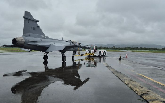 Esta é a segunda operação do tipo em Navegantes, em 2025. O FAB 4111 chegou ao Brasil na última sexta-feira, após viagem marítima desde a Suécia. Após desembarcar na Portonave, o caça foi levado em comboio pelas ruas de Navegantes até o aeroporto, onde passou por ajustes técnicos feitos pela equipe da fabricante Saab.