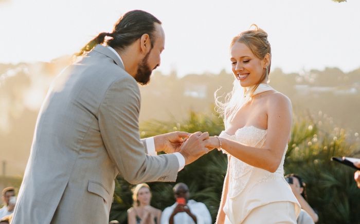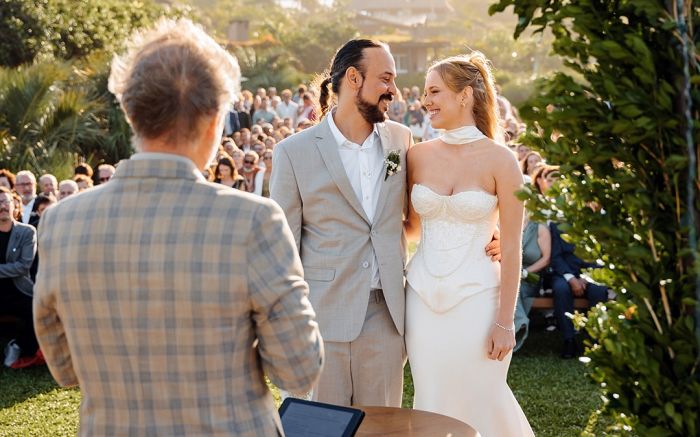 A cerimônia aconteceu na praia do Rosa, em Imbituba, na quinta-feira de feriado. Entre os convidados estavam o ator Nelson Freitas, que oficializou a união, e o cantor Armandinho. Nas redes sociais, a voz de “Analua” fez uma homenagem ao casal e ainda compartilhou que faz parte da história dos pombinhos. Foi durante um show de Armandinho, no Rio de Janeiro, que Gabriel pediu Gabriela em casamento.
