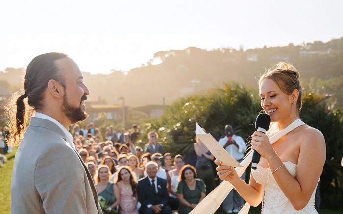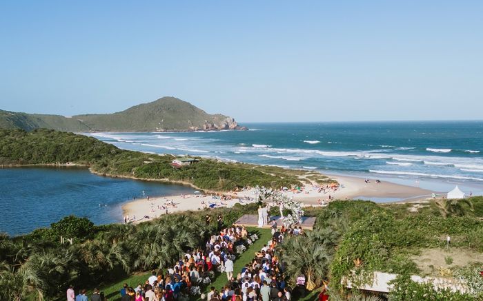 Gabriel, o Pensador se casa com Gabriela na praia do Rosa