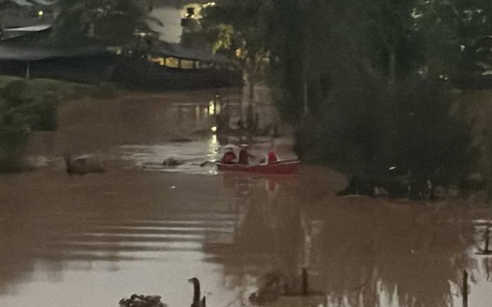 A rua professor Simão Hess, em frente ao hospital Hoscola, no bairro Vila do Salto, não registrava alagamento desde 2020. No bairro Canoas, um boi foi arrastado pela correnteza.