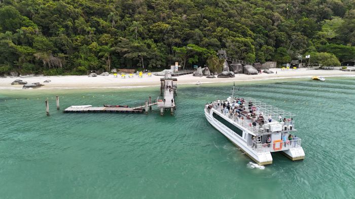 Também tem o passeio no sentido contrário: o catamarã sai do píer de Porto Belo às 9h40 e leva os passageiros até a Barra Sul. O retorno é às 16h. Em todos os casos, a recomendação é chegar 30 minutos antes pra não correr risco de perder a barca.