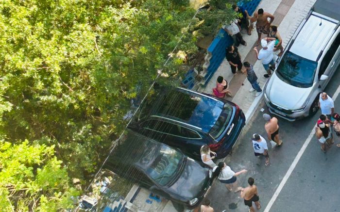 Moradores da rua Julieta Lins suspeitavam que a motorista perdeu o controle ao sair da garagem de um prédio no Pontal Norte. “A gente acha que o carro saiu direto da garagem do prédio. Ele empurrou o que estava estacionado, e agora os dois estão pendurados no rio”, relatou uma moradora.
