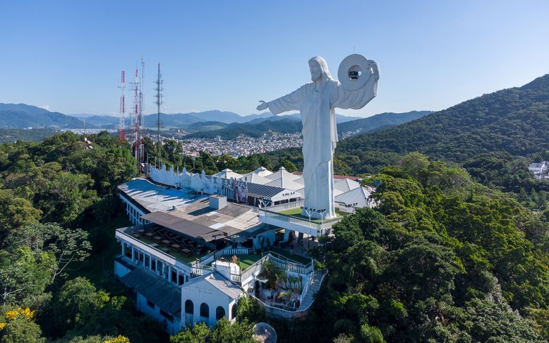 Quer ver Balneário Camboriú inteira brilhando lá de cima? O Cristo Luz é parada certeira. Instalado no Morro da Cruz, a 150 metros de altitude, o monumento de 33 metros ilumina a cidade todas as noites com um show de cores que muda diariamente — um espetáculo que dá pra ver de longe, mas só entende de verdade quem sobe até lá.
