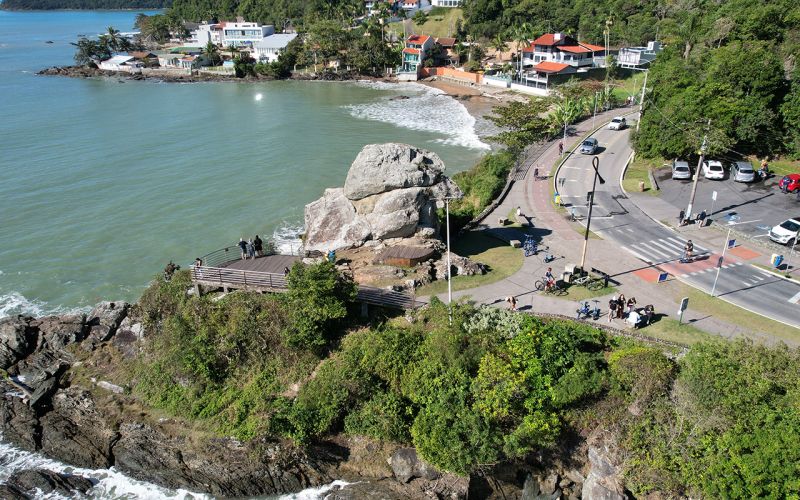 Bora respirar ar fresco no meio da Mata Atlântica? O Parque do Atalaia funciona como ponto de partida para explorar toda a região. Mesmo com o mirante principal fechado para manutenção neste verão, a área de contemplação segue aberta e rende uma vista linda do mar. Também é ali que inicia a Trilha das Cotias, com 460 metros e leva a um ponto alto onde dá pra ver como tudo ali se conecta: a praia do Atalaia logo abaixo, o morro, as rochas e o caminho que segue até o Bico do Papagaio.