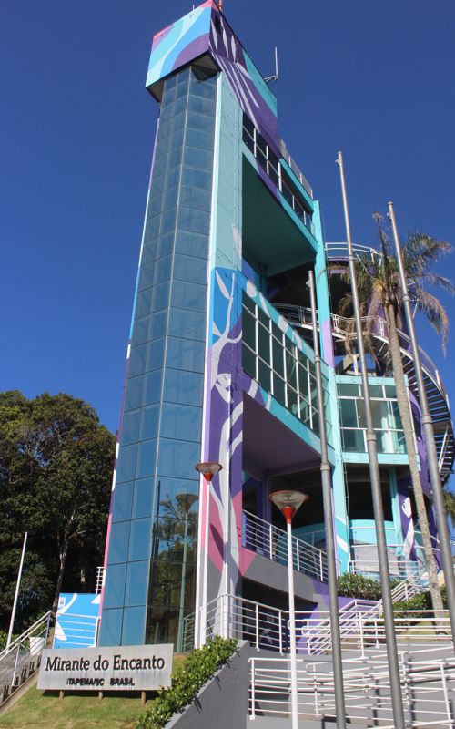 Quer um daqueles visuais que fazem a gente parar e só respirar fundo? O Mirante do Encanto entrega isso em grande estilo. A torre tem 26 metros de altura e fica a 130 metros acima do nível do mar — ou seja, lá de cima você vê Itapema todinha, além de Porto Belo, Bombinhas e o azul da Costa Esmeralda até onde a vista alcança. Um passeio rápido, gratuito e perfeito pra fotos, pôr do sol e aquele momento “uau” das férias.