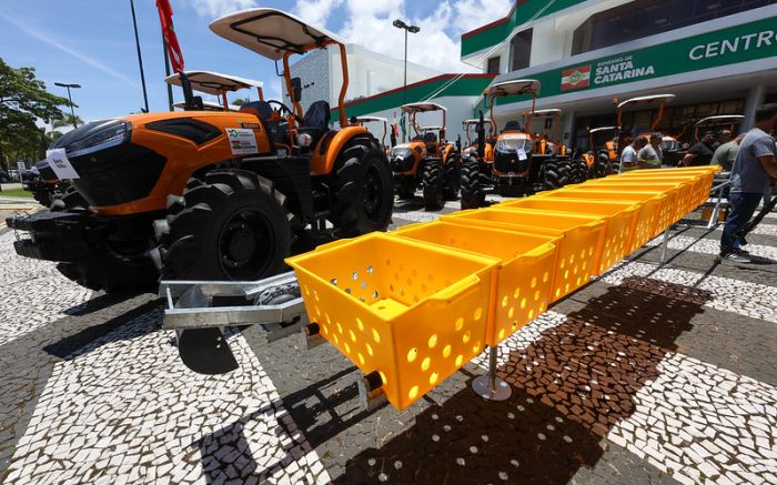 Prefeituras do litoral norte – incluindo Navegantes, Penha, Balneário Piçarras, Balneário Camboriú, Balneário Barra do Sul, Barra Velha, Bombinhas e São Francisco do Sul – receberam neste dia 8 novos tratores para ampliar a estrutura de trabalho das secretarias de Pesca e Agricultura dos municípios.