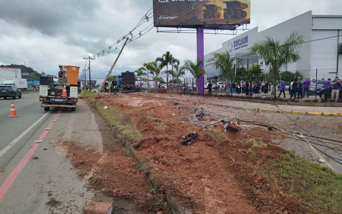 A Celesc foi chamada para trocar os postes danificados, enquanto a Polícia Militar Rodoviária sinalizou a via.