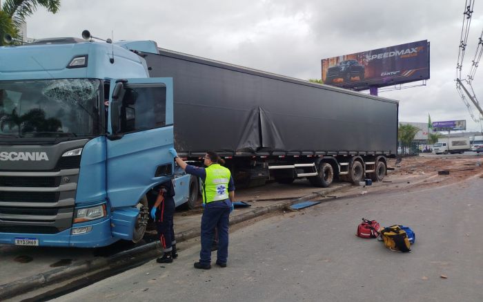 Motorista da carreta teve ferimentos e foi levado ao hospital
