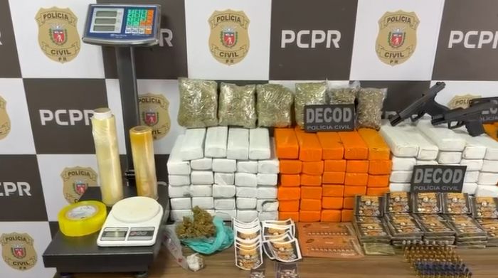 No local da prisão, a polícia apreendeu 110 quilos de maconha, cerca de cinco quilos de haxixe, 1,5 quilo de skunk, duas armas de fogo — uma pistola calibre 9x19 mm da marca Glock, equipada com seletor de rajada, e uma pistola calibre .40 da marca Taurus — além de 105 munições de diversos calibres, uma balança de precisão, balaclava e colete balístico. As investigações continuam para identificar outros envolvidos e desmontar a quadrilha.