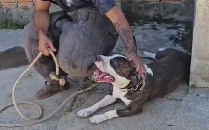 Com receio da possível agressividade do cão, o Depa solicitou apoio do adestrador Marcelo Kainak, que se voluntariou para retirar o pitbull em segurança.