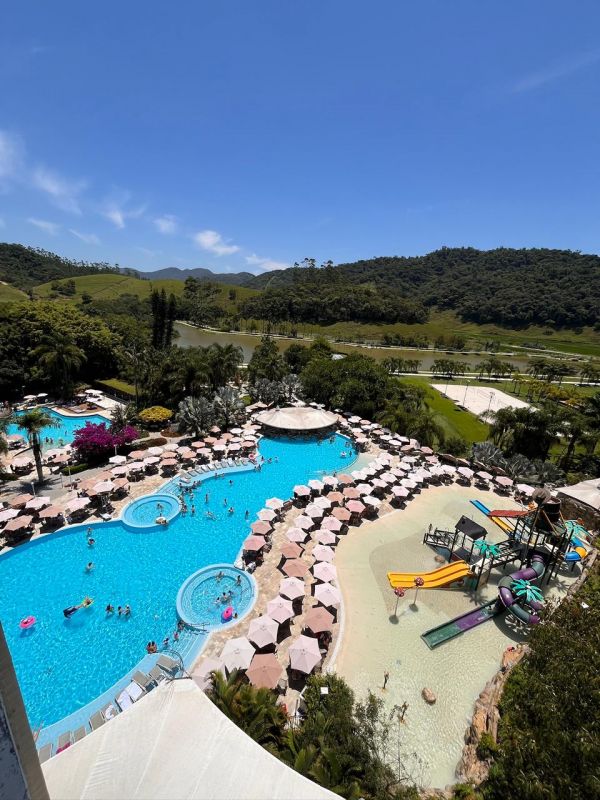 Se existe um lugar onde o tempo parece passar mais devagar, é a área das piscinas. São opções para todos os gostos: piscina externa, piscina infantil, piscina coberta e aquecida — perfeita para os dias mais frescos — e o famoso bar molhado, onde o brinde acontece sem sair da água, o que explica por que esse espaço vira ponto de encontro do começo ao fim.