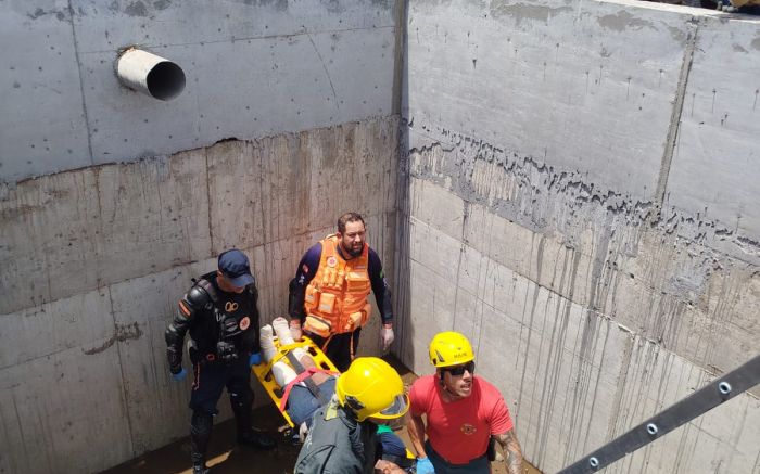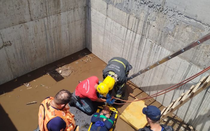 Trabalhador cai em fosso em obra