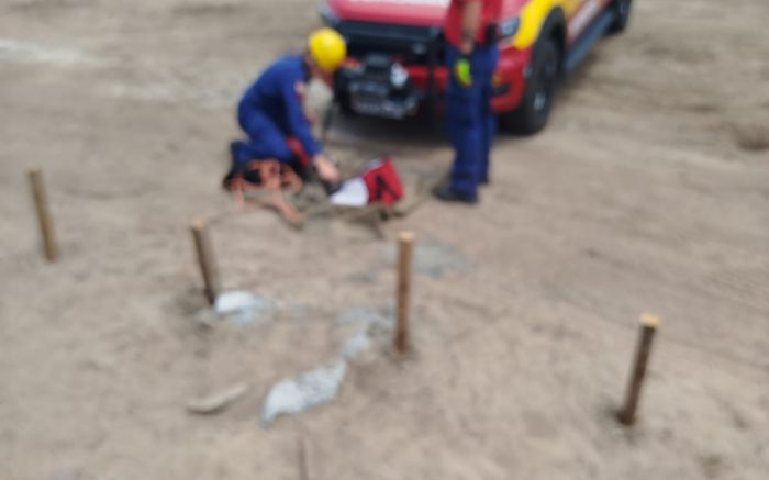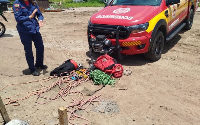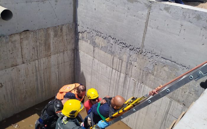 Um trabalhador caiu em um fosso de uma obra com cerca de quatro metros de profundidade na manhã de terça-feira, na rua Vicente Cândido Pereira, no São Roque, em Itajaí.