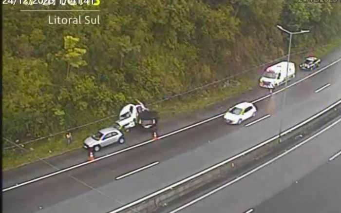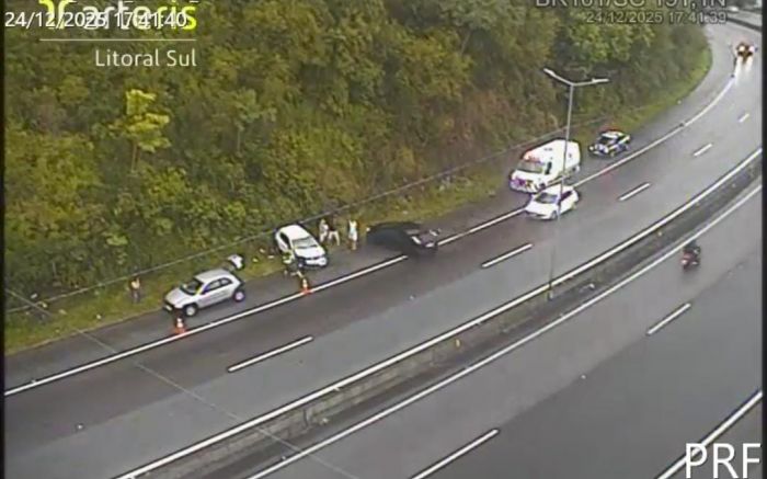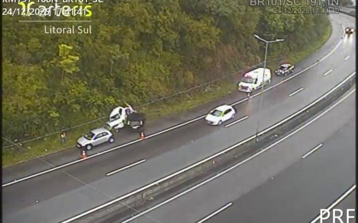 Duas pessoas que estavam sendo atendidas pela Polícia Rodoviária Federal (PRF) e dois patrulheiros da corporação ficaram feridos após serem atropelados no acostamento da BR 101, em Biguaçu, na Grande Florianópolis, na véspera de Natal. O grupo acompanhava uma ocorrência de trânsito, quando o motorista de um carro perdeu o controle numa curva, rodou na pista molhada e atingiu violentamente as vítimas.