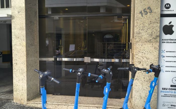 Um exemplo foi registrado na manhã de terça-feira (23), quando agentes de trânsito atenderam uma ocorrência na rua 3300, no centro de Balneário Camboriú. No local, foram encontrados 12 patinetes elétricos da empresa Jet estacionados irregularmente sobre a calçada, ocupando o piso podotátil — estrutura voltada à orientação de pessoas com deficiência visual — e bloqueando acessos a garagens e estabelecimentos comerciais.