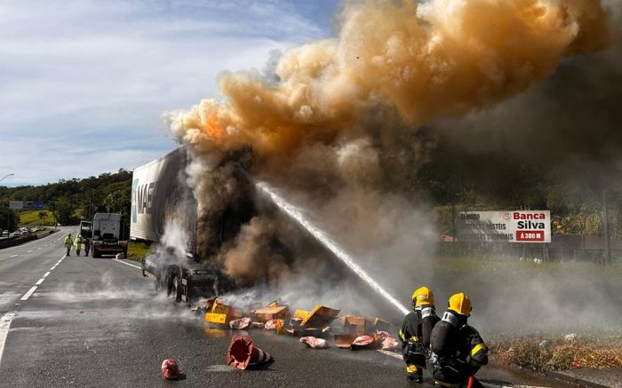 O motorista contou que descia a serra a aproximadamente 80 km/h quando usou o freio motor, o que pode ter dado início ao fogaréu.