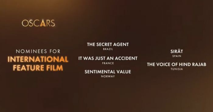 Brasil conquista cinco indicações ao Oscar 2026; quatro delas para "O agente secreto"