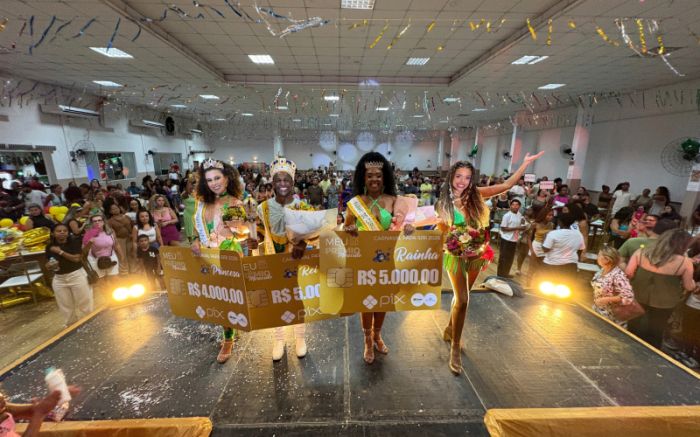 Bruno Cristopher Cândido, de 39 anos, foi eleito o Rei Momo. Para completar a trindade real, Pamela Martins Cândido, de 32 anos, foi escolhida rainha e Vitória Maria Gomes, de 24 anos, foi coroada princesa. Rei e rainha levaram R$ 5 mil cada e a princessa embolsou R$ 4 mil.