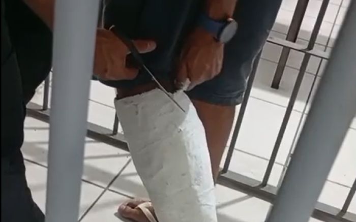 Ele usou identidade falsa de procurado pra entrar no presídio com eletrônicos escondidos no gesso da perna