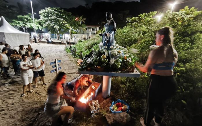 Até a lua cheia apareceu na noite de segunda-feira para acompanhar a Caminhada de Iemanjá em Cabeçudas, em Itajaí. Cerca de 2,5 mil pessoas caminharam da frente ao terreiro André Trindade, Templo de Ogum Beira Mar, na rua Teresa Francisca Pereira, até a areia da praia, onde foram feitas oferendas à rainha do mar.