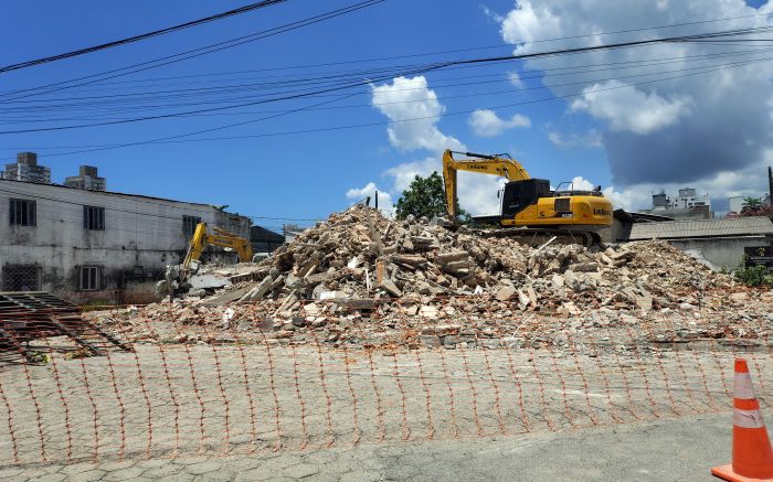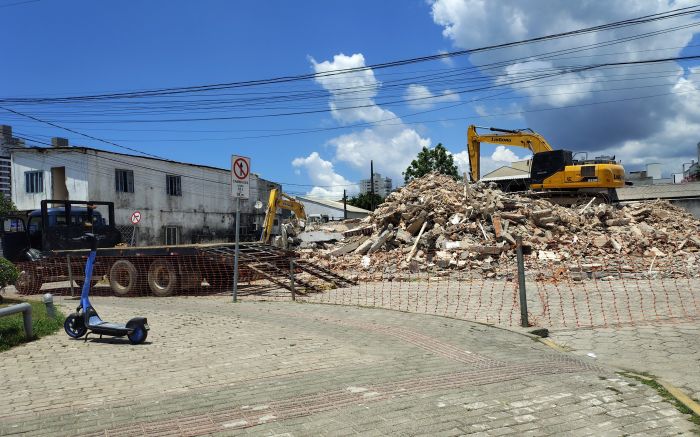 Um dos últimos imóveis necessários para o avanço da rua do Porto teve a demolição concluída na quinta-feira pela Prefeitura de Itajaí. O prédio, que já abrigou a garagem de carros do Jacaré e mais recentemente funcionava como restaurante, ficava na esquina das ruas José Francisco Constantino e Olegário de Souza Júnior e foi colocado abaixo pelas máquinas da prefeitura.