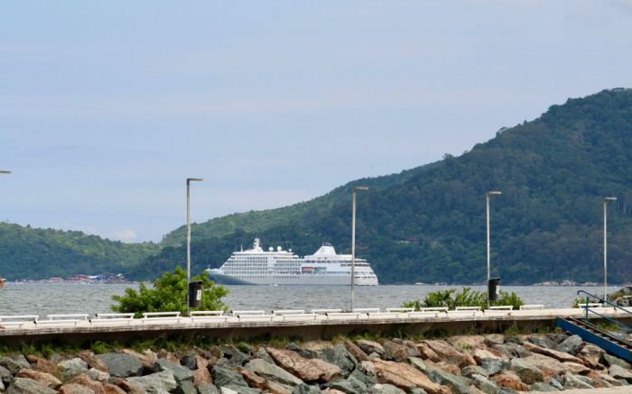 Balneário Camboriú recebeu no sábado o navio Silver Whisper, da companhia Silversea, vindo de Punta del Este, no Uruguai. A embarcação permaneceu fundeada na cidade ao longo do dia e segue viagem para Santos (SP) às 18h. Esta é a segunda escala do cruzeiro por aqui nesta temporada.