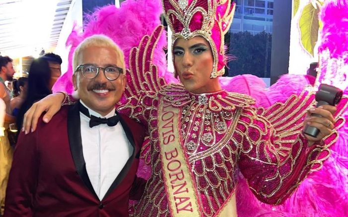 Alex Ferrer apostou num smoking com paletó bordô e calça preta, assinado pela Manoela Mikus Maison, de Balneário Camboriú. Para o evento, ele também mudou o visual com harmonização facial feita pelo doutor Denis Pierry e uma transformação no cabelo, que passou a ser loiro platinado. “Sem dúvida, o Baile da Vogue é a festa mais concorrida entre os famosos. Fico muito lisonjeado em receber esse convite mais uma vez e, de alguma forma, representar Santa Catarina de forma glamourosa”, disse Alex Ferrer.