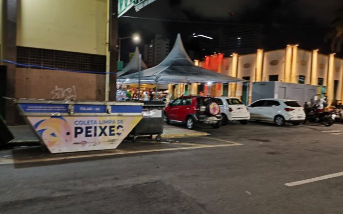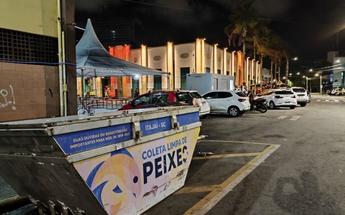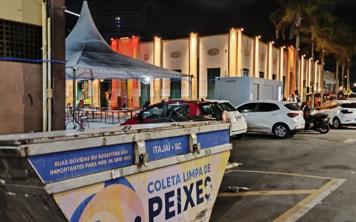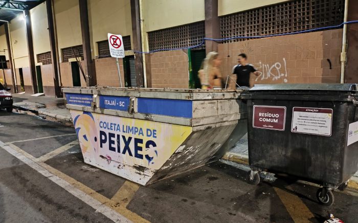 Quem curte o carnaval no Mercado Velho, em Itajaí, precisa enfrentar um obstáculo: o mau cheiro vindo de uma caçamba com resíduos de peixe acumulados desde sábado. A caçamba só será esvaziada na segunda-feira.