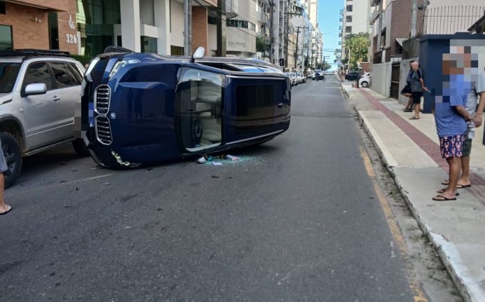 Os agentes de trânsito foram acionados e encontraram o carrão capotado. O motorista, de 72 anos, contou que se distraiu no volante e acabou causando a sequência de batidas.