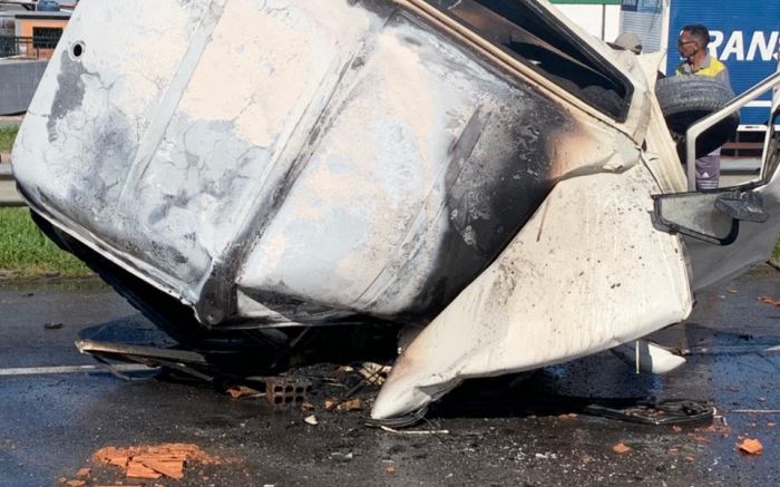 O motorista de 29 anos que dirigia a Kombi com placas de Itajaí, que explodiu no engavetamento da última quarta-feira e matou três pessoas da mesma família, recebeu alta do hospital Marieta Konder Bornhausen no sábado. Ele ficará alguns dias na região e depois voltará para o Paraná, onde moram os pais, para continuar o tratamento, principalmente das queimaduras.