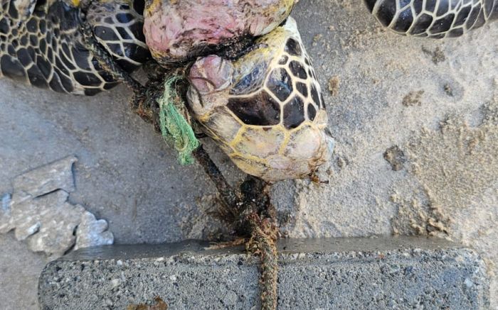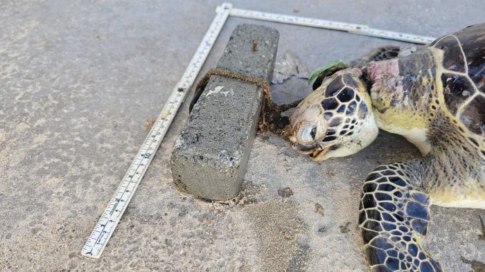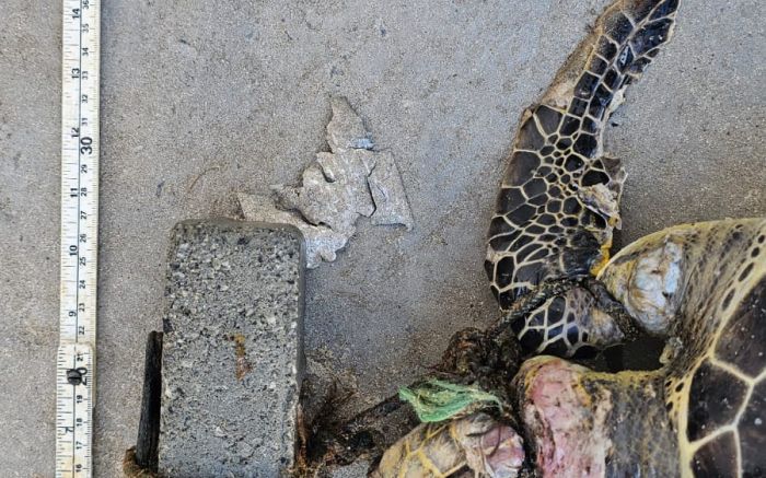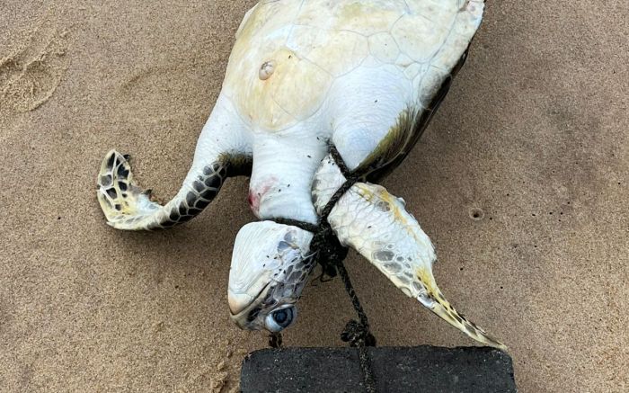 Tartaruga é encontrada morta em Itapema com bloco de concreto amarrado na cabeça