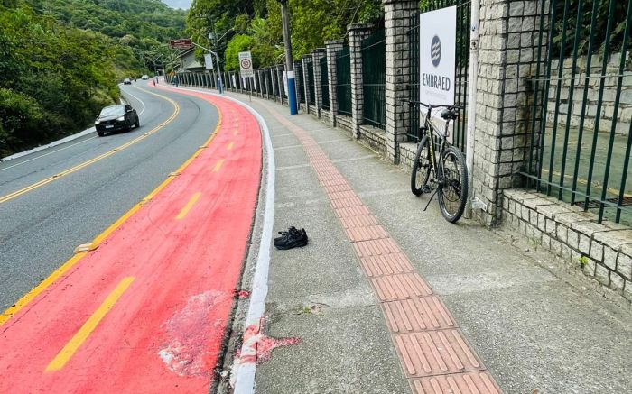 A BC Trânsito controlou o tráfego e fechou a subida da via para o resgate. A bicicleta e os pertences foram recolhidos pela Autarquia.