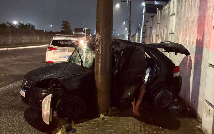 Um carro bateu contra um poste na madrugada desta terça-feira na rua Alfredo Eicke Junior, no bairro Barra do Rio, em Itajaí. O acidente deixou um garoto de 12 anos e um adulto feridos.