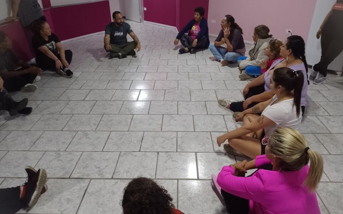 O projeto começou em 2022, na Casa de Referência da Mulher, no fórum de Penha, e ganhou reforço com a parceria da academia Pelé Team.