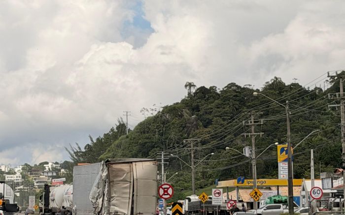 Reflexos do acidente entre caminhões continuam e congestionamento já chega a Itajaí no fim da manhã
